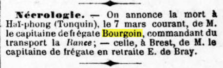 - Décédé le 7 mars 1879, au large de la ville de HAÏPHONG (Vietnam)