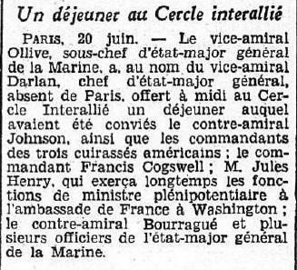 (août 1940 - septembre 1940) . Limogé par l'amiral Darlan de son