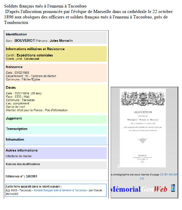 Au 1er janvier 1894, en service au Régiment de Tirailleurs Soudanais