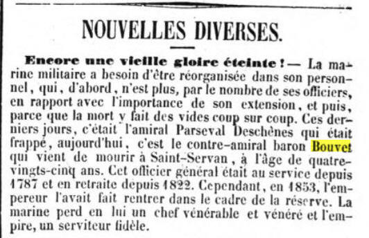 (Réunion) - Décédé le 18 juin 1860 à SAINT SERVAN (Ille et Vilaine)