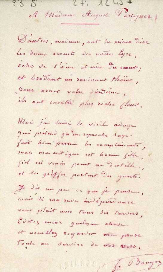 Poème dédicacé à madame