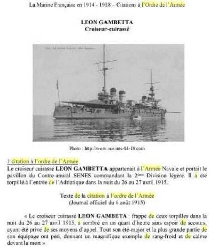 Officier sera parmi les victimes du torpillage du "LÉON-GAMBETTA".
