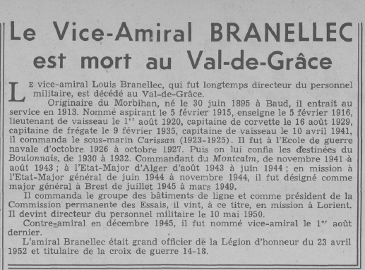BAUD (Morbihan) - Décédé le 8 septembre 1952 à l'hôpital Val de