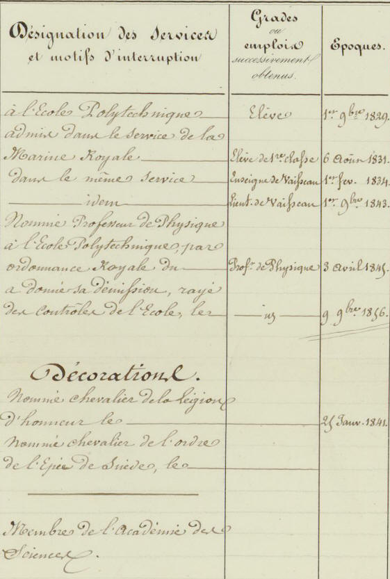 Entre dans la Marine en 1829, issu de