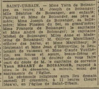 (Manche) - Décédé le 24 décembre 1941 à SAINT-URBAIN (Finistère).