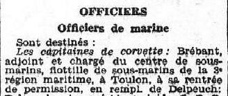 Second du sous-marin "JOESSEL", Escadrille de sous-marins de TOULON