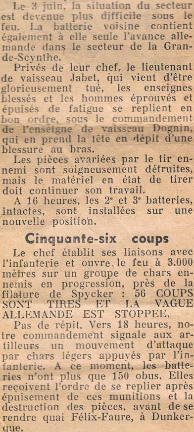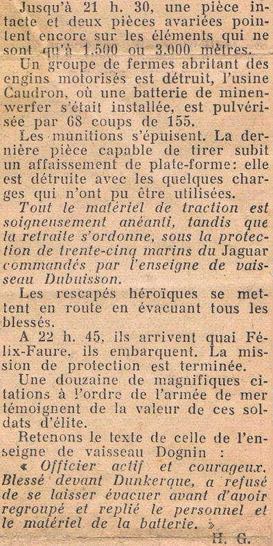 le 3 ou 4 juin 1940 sur le torpilleur ‘Cyclone” qui a été avarié par