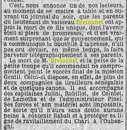 Emile Gentil de la mort de Bretonnet.