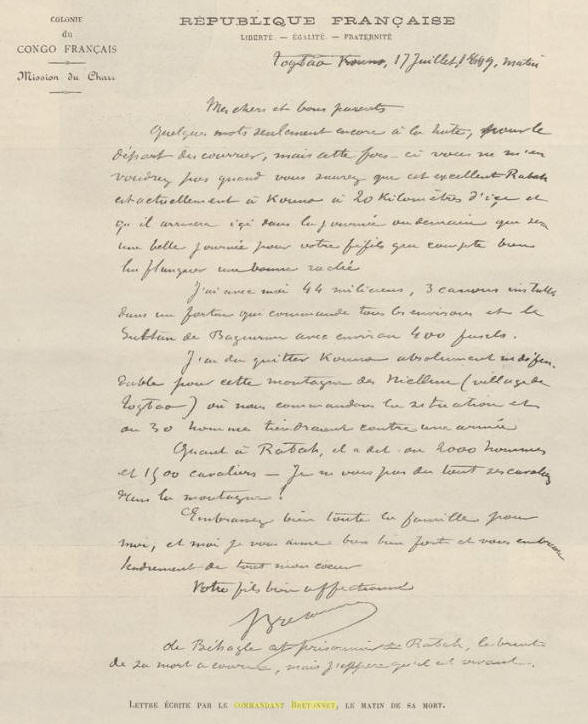 le 27 janvier 1894, il est sous les ordres du commandant Monteil et