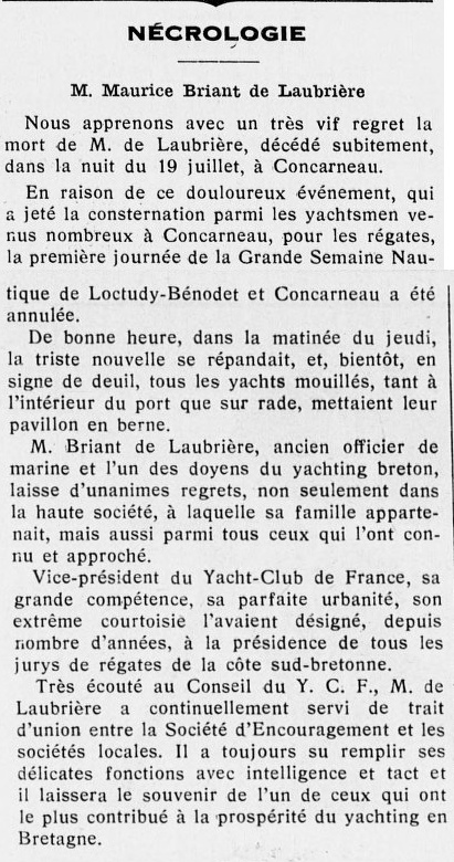Notes du Dr Gaumé, ancien président du Yacht Club de l’Odet
