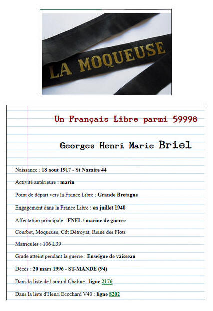 les FNFL en juillet 1940. Quartier-maître sur La Moqueuse, puis