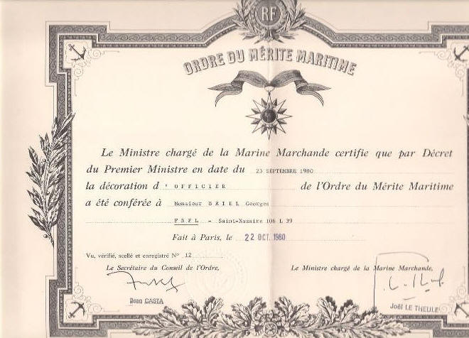 Officier de l'Ordre du Mérite maritime, le 22 octobre 1980
