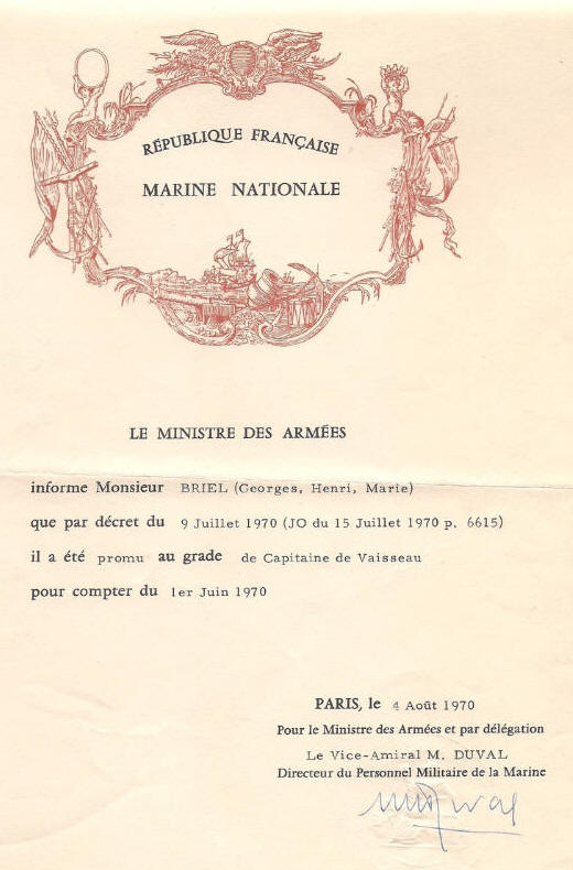 Capitaine de vaisseau le 1er juin 1970
