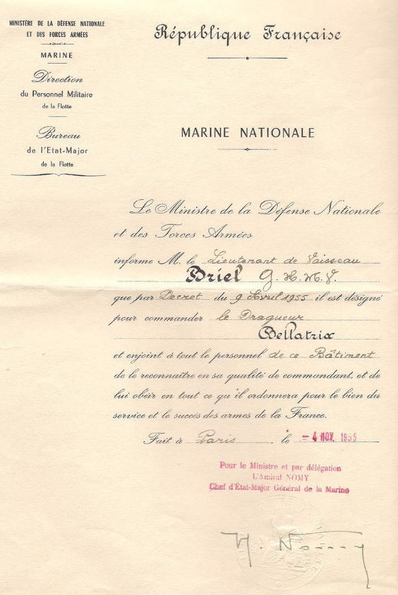 Commandant du dragueur "BELLATRIX" en avril 1955