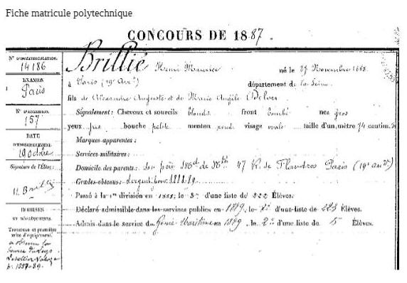 Élève de l'École polytechnique le 1er novembre 1887, opte pour le