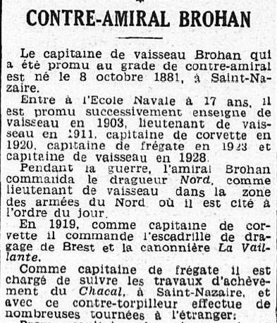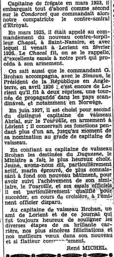 le 19 août 1928. Chef d'État-Major à la Majorité générale à BREST.