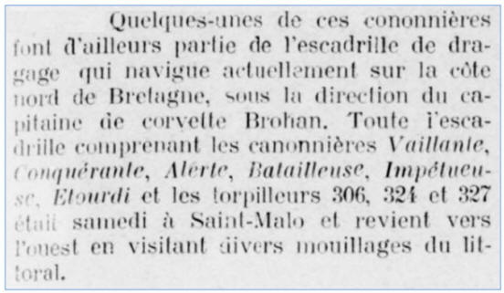 dragueur "NORD", puis la canonnière "VAILLANTE" en 1919.