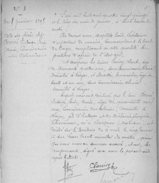 Fils d’Eutrope Auguste BRONI et de Mélanie Françoise CHICOINNEAU