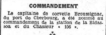 de vaisseau de 2ème classe le 5 octobre 1911; port BREST.