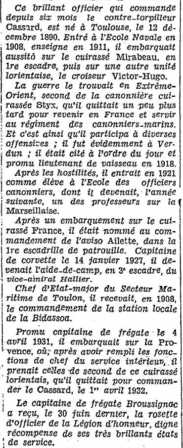 Capitaine de vaisseau le 10 juin 1937