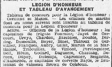 1er janvier 1914 (nomination du 1er novembre 1912), Second du