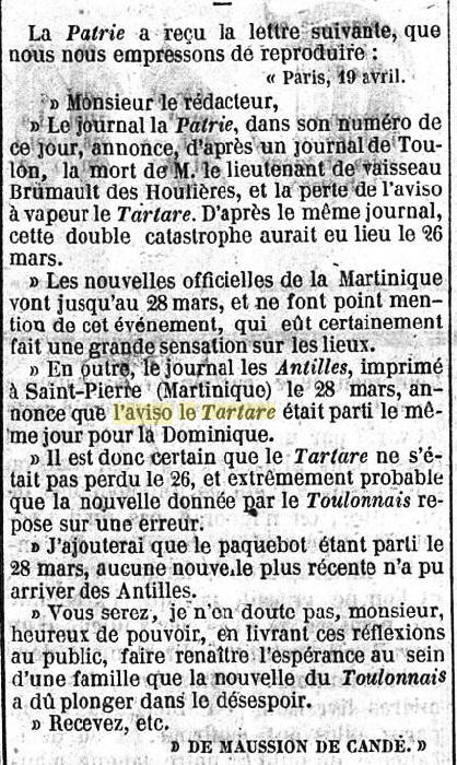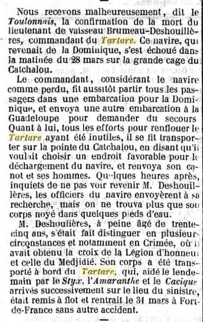 décès émis à LA ROCHELLE, il commandait l'aviso le "TARTARE"