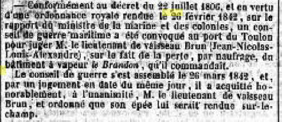 Conseil de Guerre de TOULON acquitte le Lieutenant de vaisseau pour