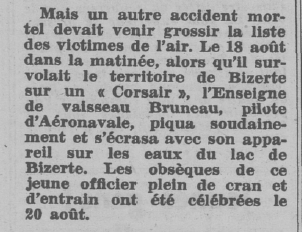 A son décès, Flottille 17 F, pilote de l'avion Vought AU 1 Corsair