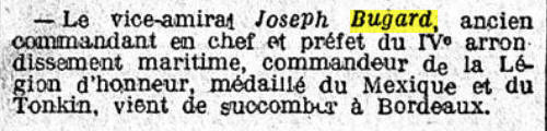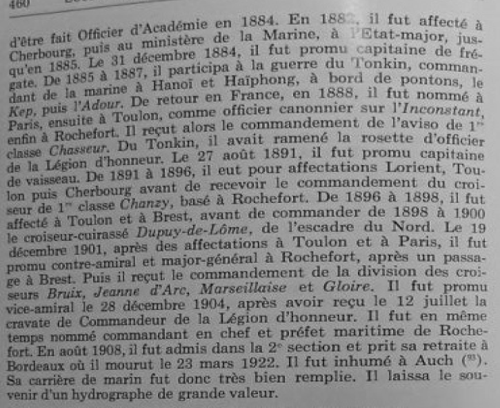 1908, il est Préfet maritime du 4ème arrondissement de ROCHEFORT.