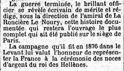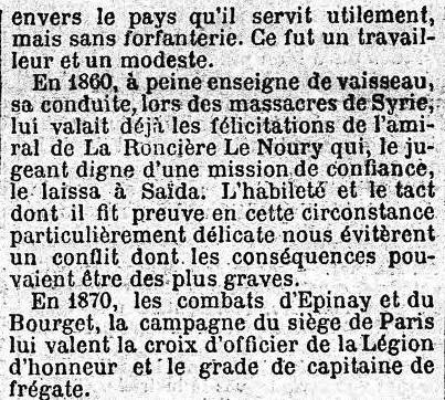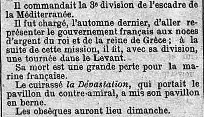 Le 7 octobre 1874, Commandant l'aviso "FORFAIT", 2ème Division de