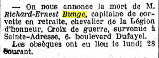 au HAVRE (Seine Maritime) - Décédé le 25 avril 1930 au HAVRE (Seine