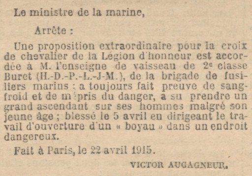 d'allant, de bravoure et de calme sous le feu. Blessé le 5 avril