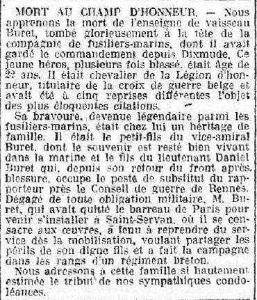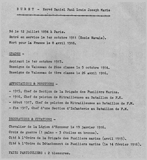 Fusiliers Marins, il décède des suites des blessures reçues.