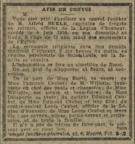 Né le 1er aout 1845 à BREST (Finistère) - Décédé le 4 juin 1918 à