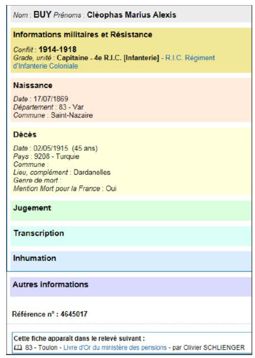À son décès , Capitaine au 4ème Régiment Colonial mixte de marche.