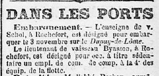 Au 1er janvier 1910 à ROCHEFORT, il se fait affecter à l'École de