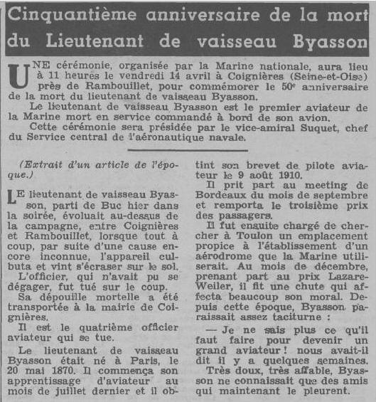(Seine) - Tué le 14 avril 1911 dans un accident d'avion à COIGNIÈRES