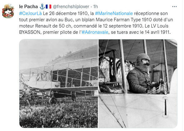 26 décembre 1910, la Marine lui confie son premier avion, le Maurice