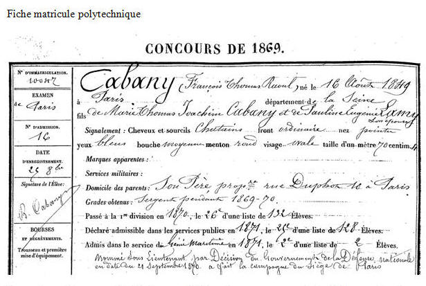 Sous-ingénieur de 3ème classe le 23 décembre 1873 au 16 mai 1876