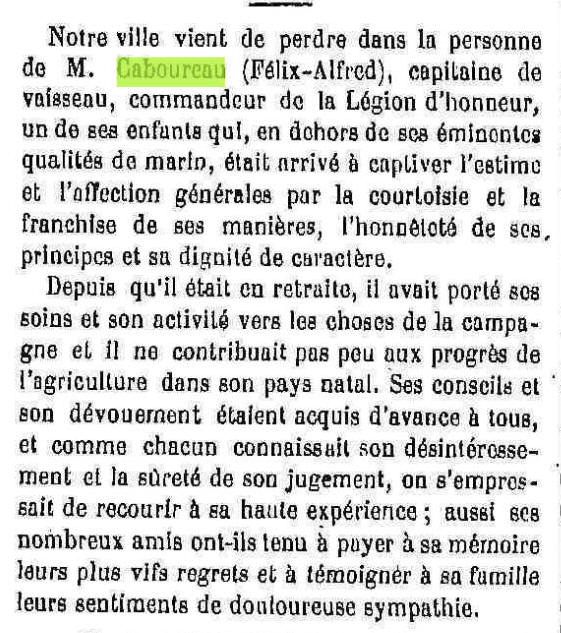 Caboureau, militaire capitaine de frégate et de Louise Marie Thérèse
