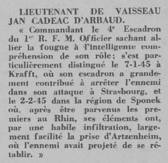 prend le commandement du 4ème Escadron en novembre 1944.