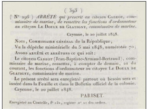 Baptiste, procureur du roi à Cayenne, avait donné son consentement