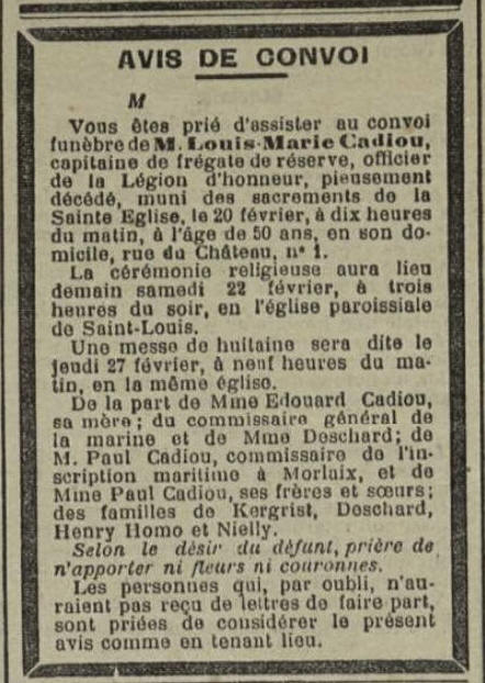 - Décédé le 20 février 1902 à BREST (Finistère)