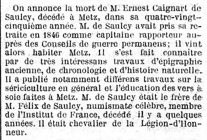 1845 et s'installe à METZ où il se consacre à l'histoire naturelle.