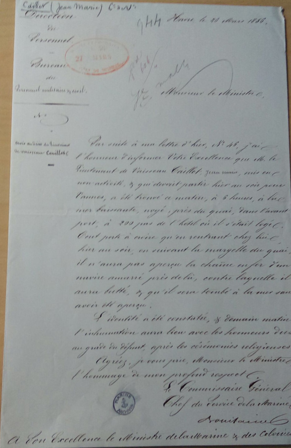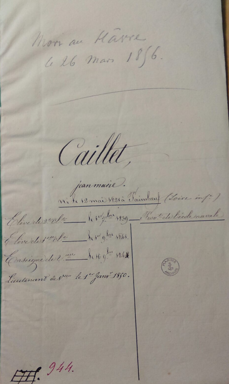 Atlantique) - Décédé le 26 mars 1856 au HAVRE (Seine Maritime)