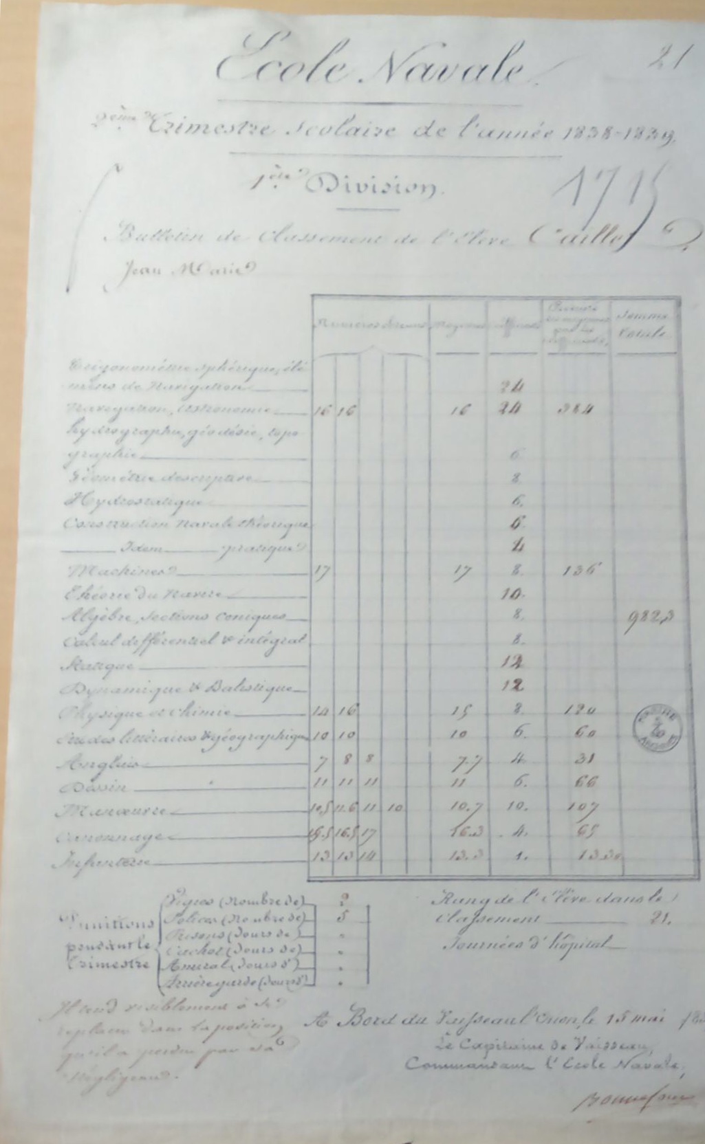 septembre 1839; port BREST.