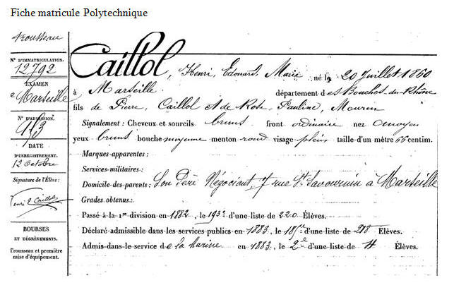 Élève de l'École polytechnique en 1881, opte pour la Marine.