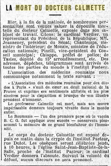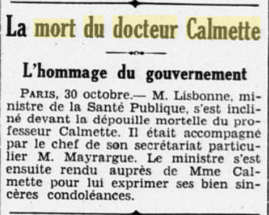 Benjamin WEILL-HALLE, en accord avec CALMETTE, a vacciné avec succès