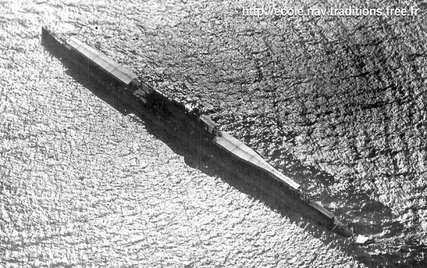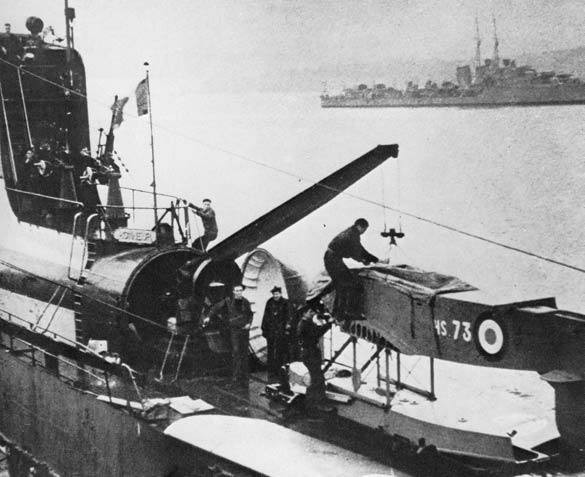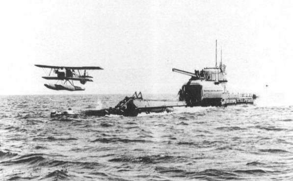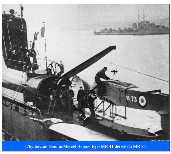 Lorsque le sous-marin est en surface, l'hydravion sert à donner les