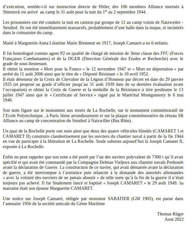 Schirmeck, dont Joseph Camaret, furent sur ordre du Haut